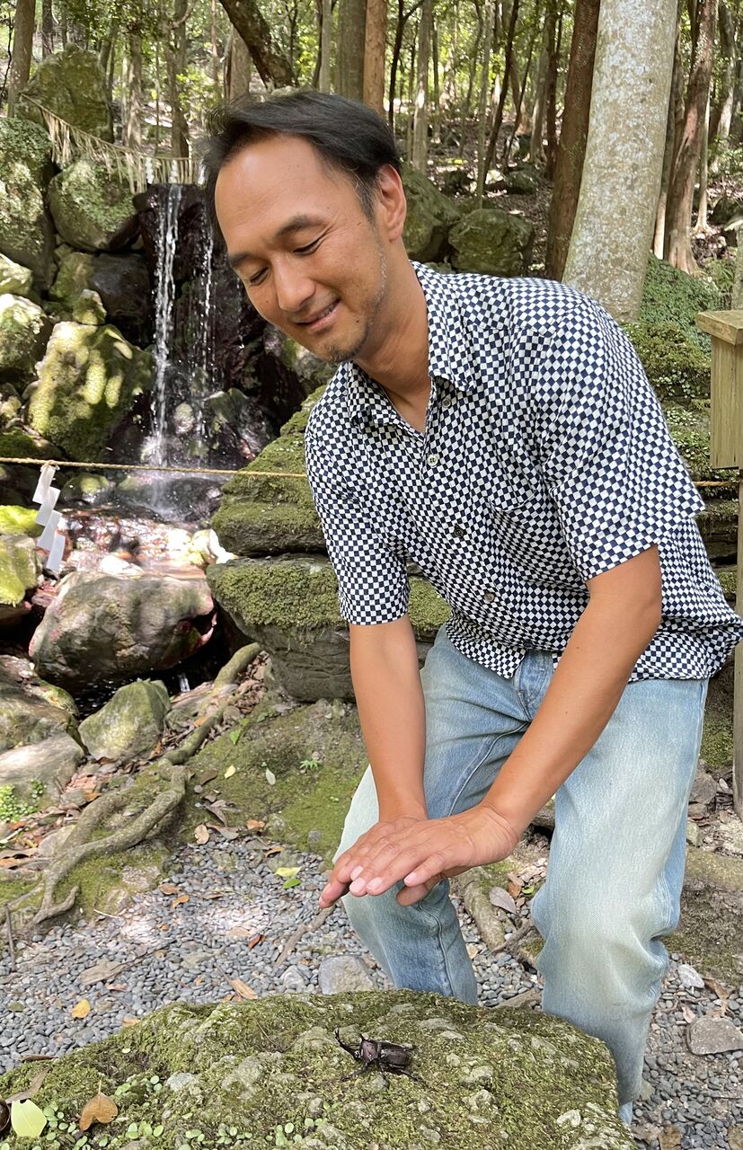 ↑滝で御神業をしていたら、滝壺でカブトムシが溺れていたので、シローちゃんが助け出し、レイキをし、私からは超能力をしました!